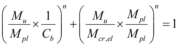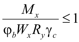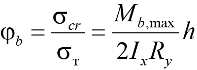 Расчет на устойчивость изгибаемого элемента сплошного сечения при изгибе в плоскости стенки, совпадающей с плоскостью симметрии сечения, согласно СП 16.13330.2017 [4], производят по формуле: