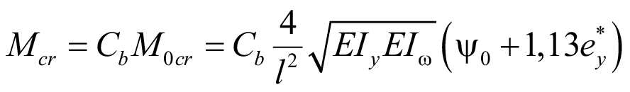 Упругий изгибно-крутильный момент Mcr,el вычисляется по бифуркационной теории по (68) при чистом изгибе Cb = 1.