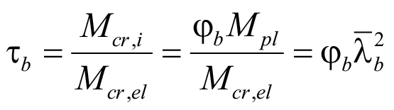 Коэффициент редукции балки τb в деформационной теории можно переписать через коэффициент устойчивости φb и условную изгибно-крутильную гибкость