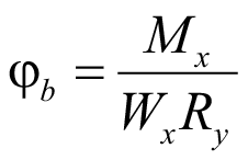 Коэффициент устойчивости при изгибе φb определяется через напряжения текучести: