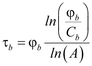 Используя свойство логарифма ax = ex×lna = lna×ex и свойство экспоненты ex = b → lnb = x, найдем τb: