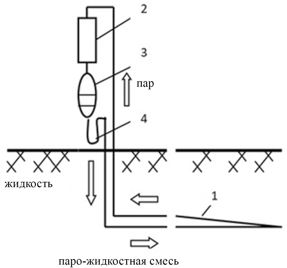Рис. 2. Схема работы горизонтального, прямоточного, напорного, парожидкостного термосифона (система ГЕТ):