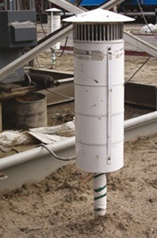Термосифон, или термостабилизатор грунта (ТСГ), – сезонно-охлаждающая установка (СОУ) в виде трубы, действующая по принципу естественной циркуляции теплоносителя (сначала использовался керосин, позднее – углекислота или аммиак) за счет сезонных изменений температуры на поверхности. Используется металлическая герметично запаянная, заправленная хладагентом трубка диаметром от 36 до 57 мм, длиной от 6 до 10 м и более, состоящая из конденсатора с оребрением (надземной части длиной в пределах 1,0–2,5 м) и испарителя (подземной части длиной от 5 до 9 м и более). ТСГ обеспечивают эффективное понижение температуры грунтов до нескольких градусов, в зависимости от климатических условий (в морском климате меньше), но на небольшом расстоянии, в радиусе до 1,5–2,0 м, и требуют значительного времени (до нескольких лет) для того, чтобы это понижение температуры основания произошло. При их применении следует учесть возможное развитие деформаций пучения, которые могут развиваться и в мерзлых грунтах при их охлаждении.