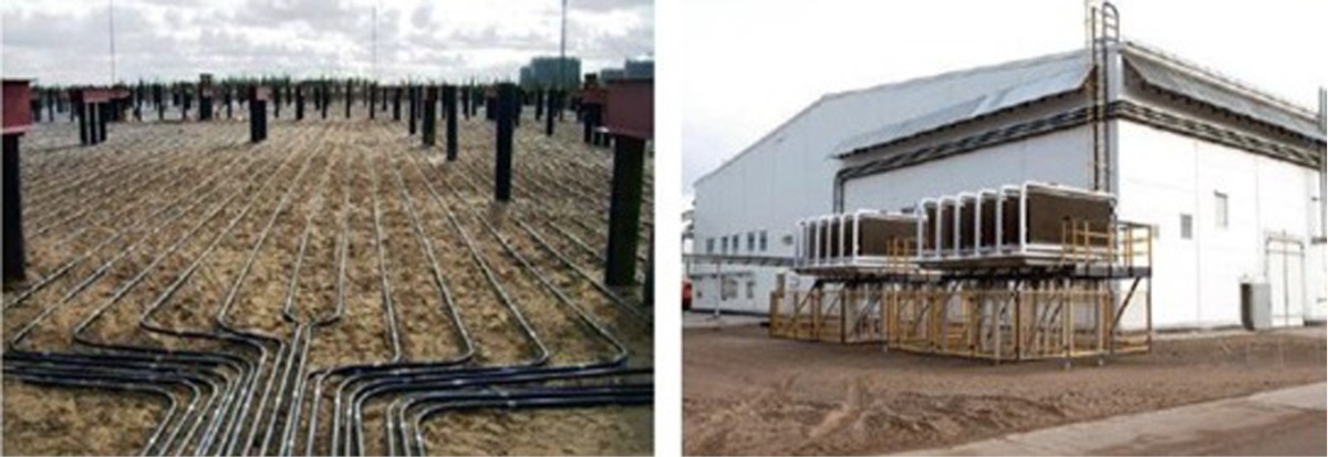 Другим способом охлаждения является использование аммиачно-рассольной установки с насосом. Установка состоит из двух контуров. Аммиачный контур (охладитель) находится внутри холодильной машины, рассольный контур проходит через испаритель холодильной машины и через конденсаторный блок системы ГЕТ, в котором за счет прокачки рассола циркуляционным насосом в летний период поддерживается низкая отрицательная температура. Совмещение ТСГ с искусственным охлаждением будет иметь большое значение в будущем, когда естественное охлаждение в связи с глобальным потеплением станет неэффективным или вовсе бесполезным. Дело в том, что в настоящее время практически все естественные охлаждающие системы (ТСГ, вентилируемые подполья, трубы и каналы) для охлаждения грунтов используют низкую отрицательную температуру атмосферного воздуха в зимнее время. С потеплением климата температура атмосферного воздуха повышается, в основном в зимнее время. И наступит время, когда эти системы охлаждения перестанут обеспечивать охлаждение основания. Это приведет к массовым деформациям сооружений на многолетнемерзлых грунтах, если к этому времени не будет альтернативы естественному охлаждению. Важно знать, когда это произойдет. Для чего необходимо иметь надежный прогноз, геотехнический стандарт климатического потепления. Большинство известных сценариев климатического потепления для этого не совсем подходят, ибо они многозначны и распространяются на большие территории. Для геотехнических расчетов нужны однозначные сценарии для конкретных, относительно небольших климатических районов. В определенной мере этому требованию соответствует сценарий авторетроспективного анализа метеорологических рядов среднегодовой температуры воздуха, разработанный на кафедре геокриологии МГУ [2].