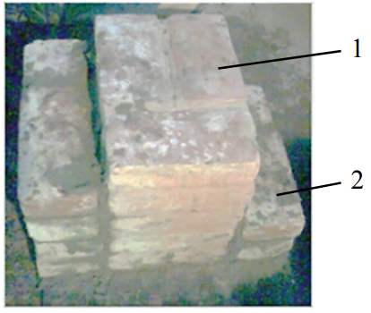 Fig. 8. M4-TsS series masonry sample: 1 – backfill; 2 – facing layer
