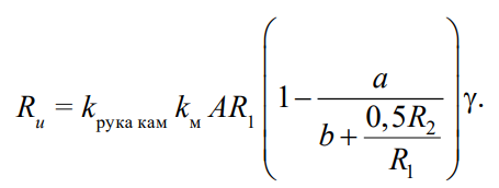 5.6. Прочность кладки на сжатие целесообразно считать по видоизмененной формуле Л.И. Онищика (3) с введением в нее коэффициентов, учитывающих качество кладки (kрука кам) и влияние габаритов (kм).