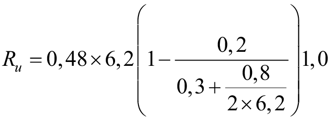 Для кладки из кирпича «Манеж» прочностью на сжатие R= 6,2 МПа и изгиб R= 1,4 МПа конструктивный коэффициент А в (1) принимаем по изгибу (2б) как по наименьшему значению, равному 0,48. Коэффициент γ в (1) принимаем равным 1.