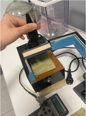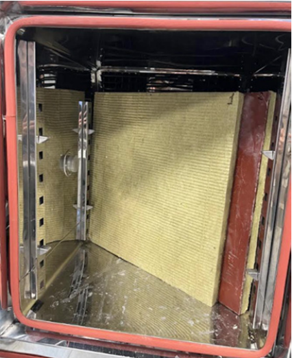 Перед проведением измерений минераловатная плита выдерживалась в климатической камере в течение 72 часов для стабилизации влажности и температуры. Для испытаний подготавливали образцы размером 100 × 100 мм и толщиной 10 мм.